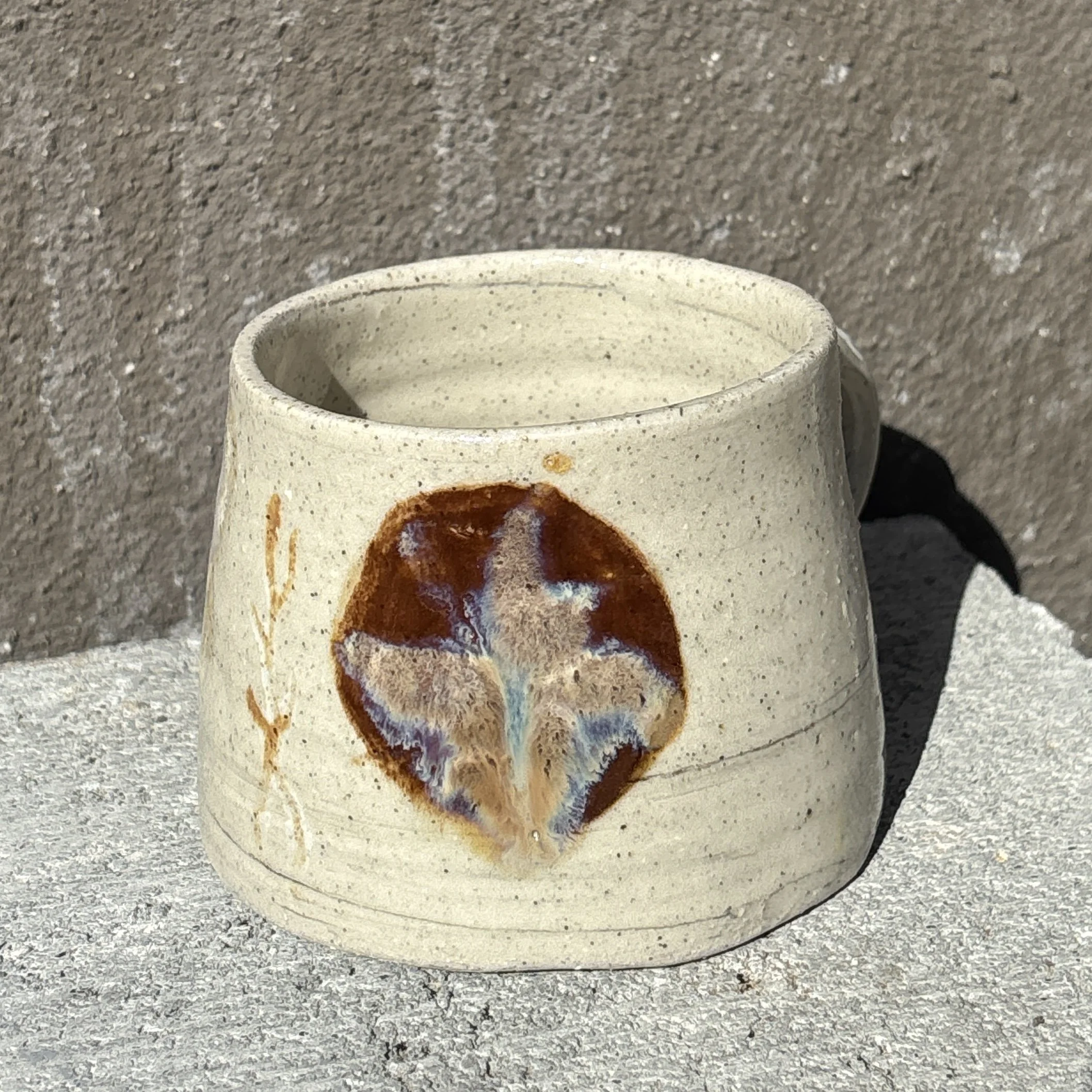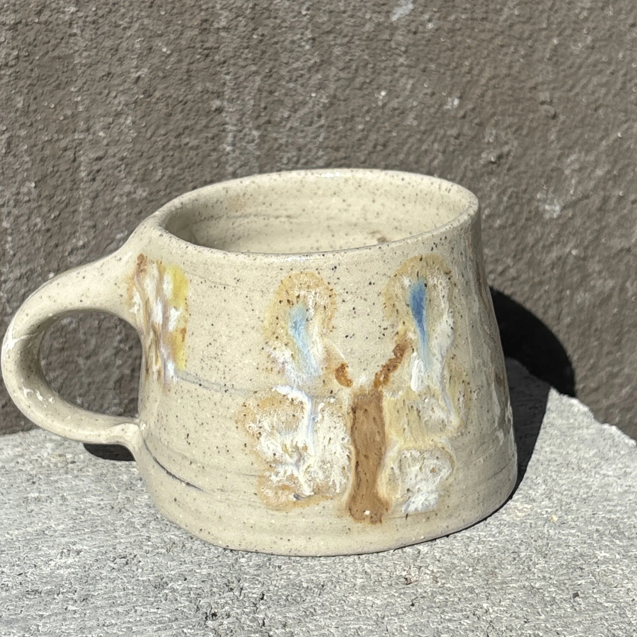This handmade mug was carefully crafted and hand painted.