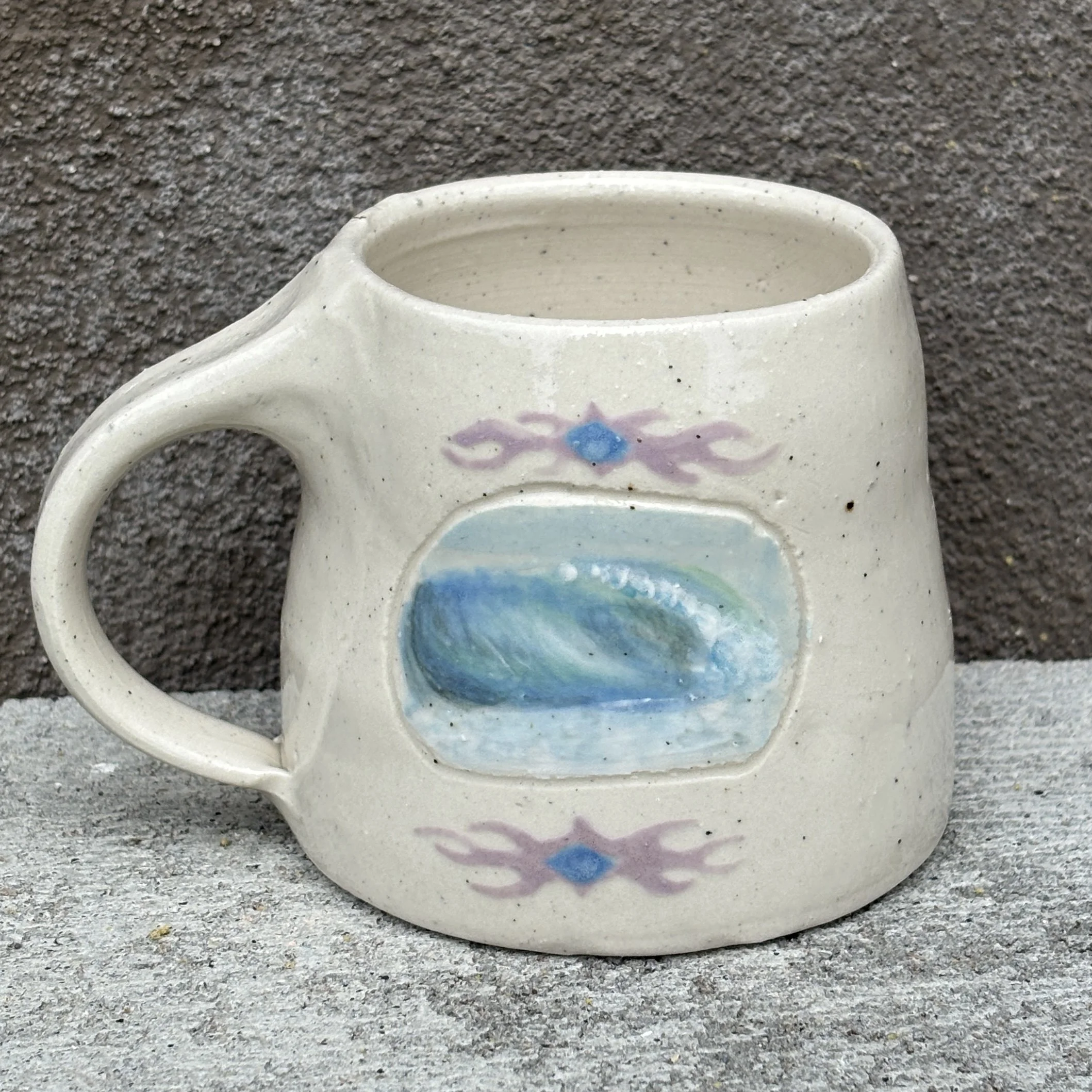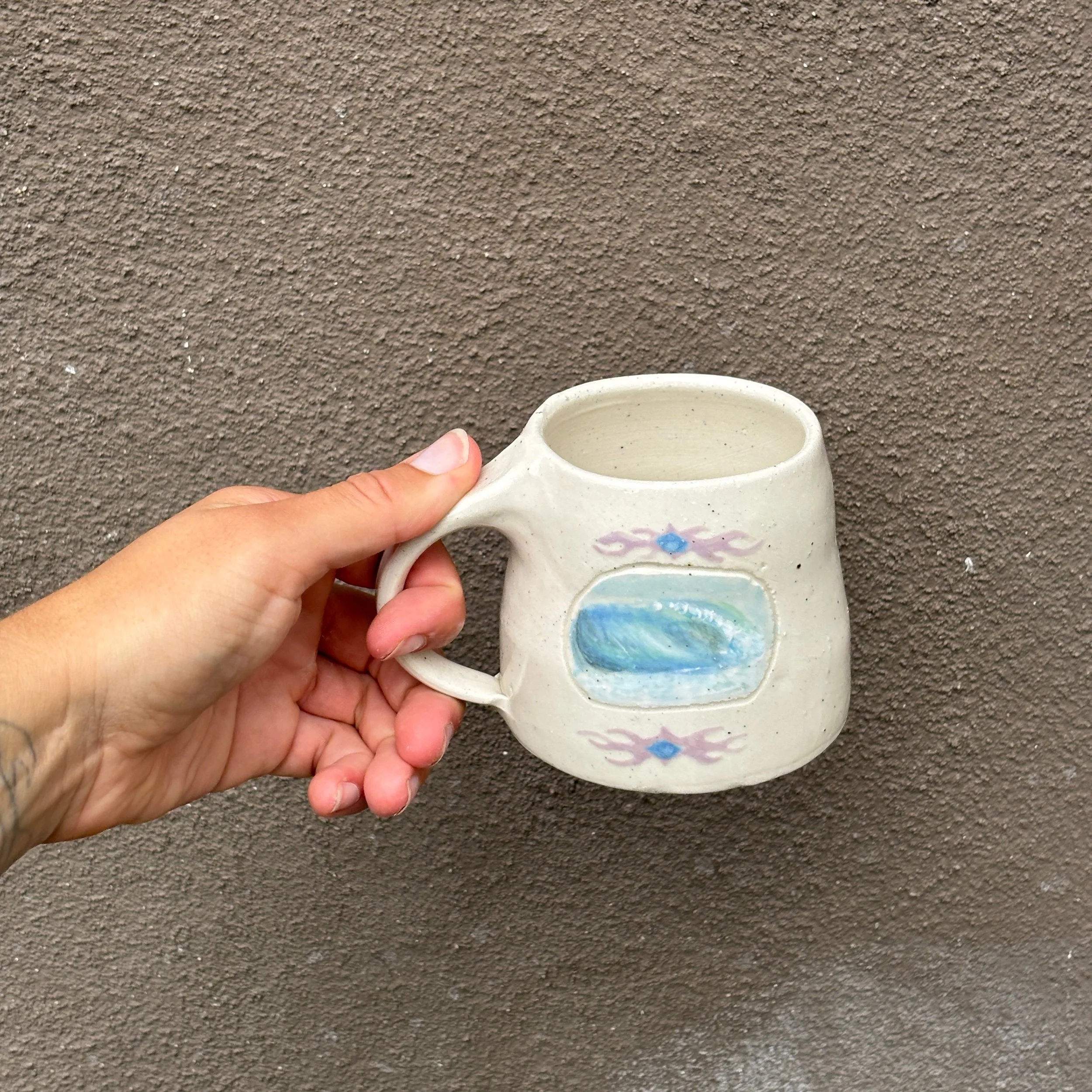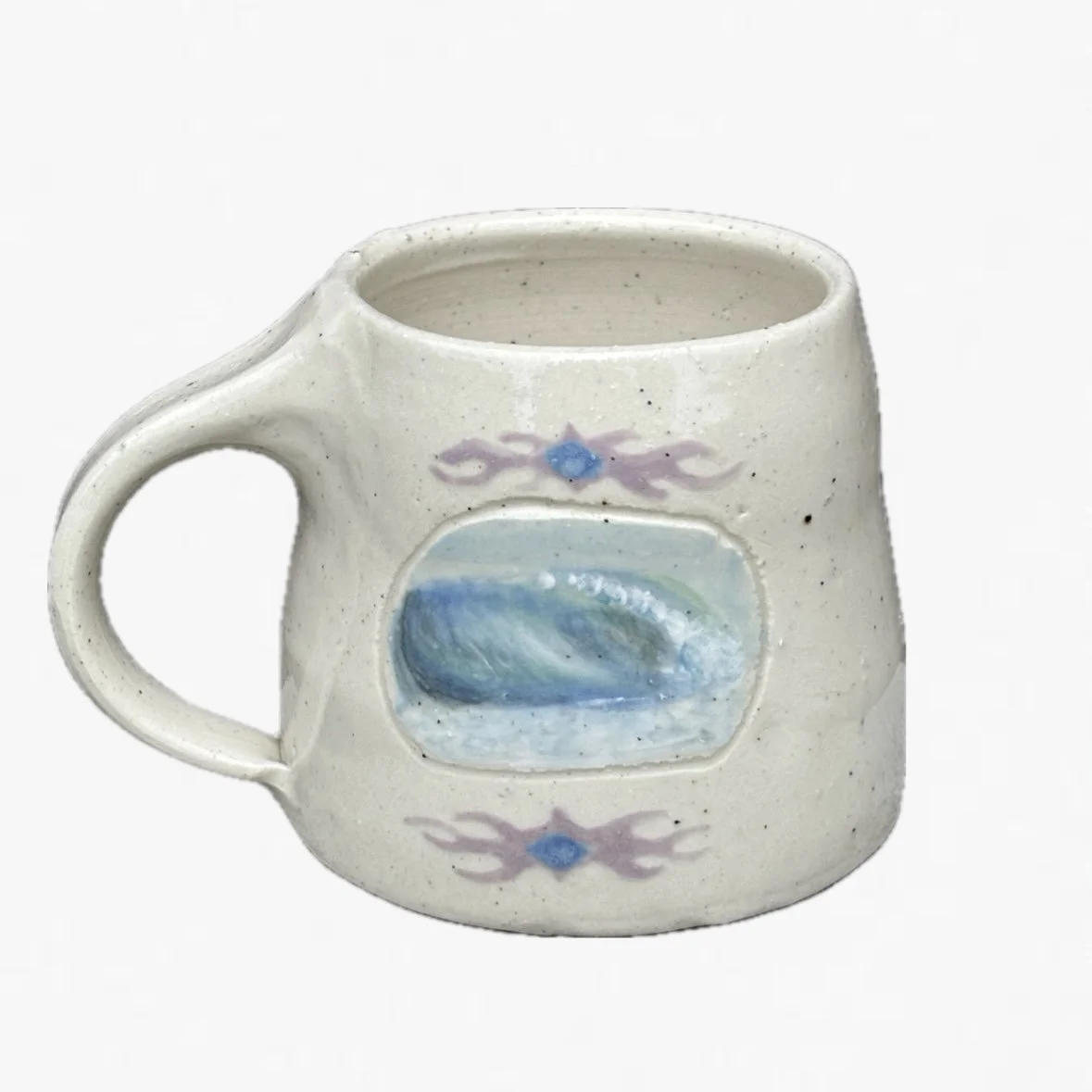 This handmade mug was carefully crafted and hand painted.