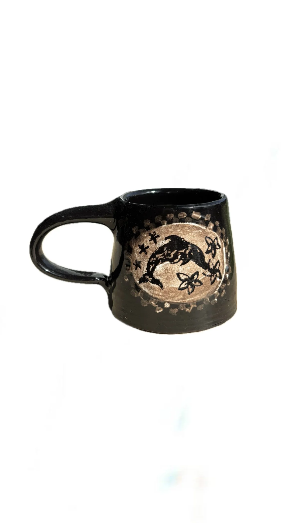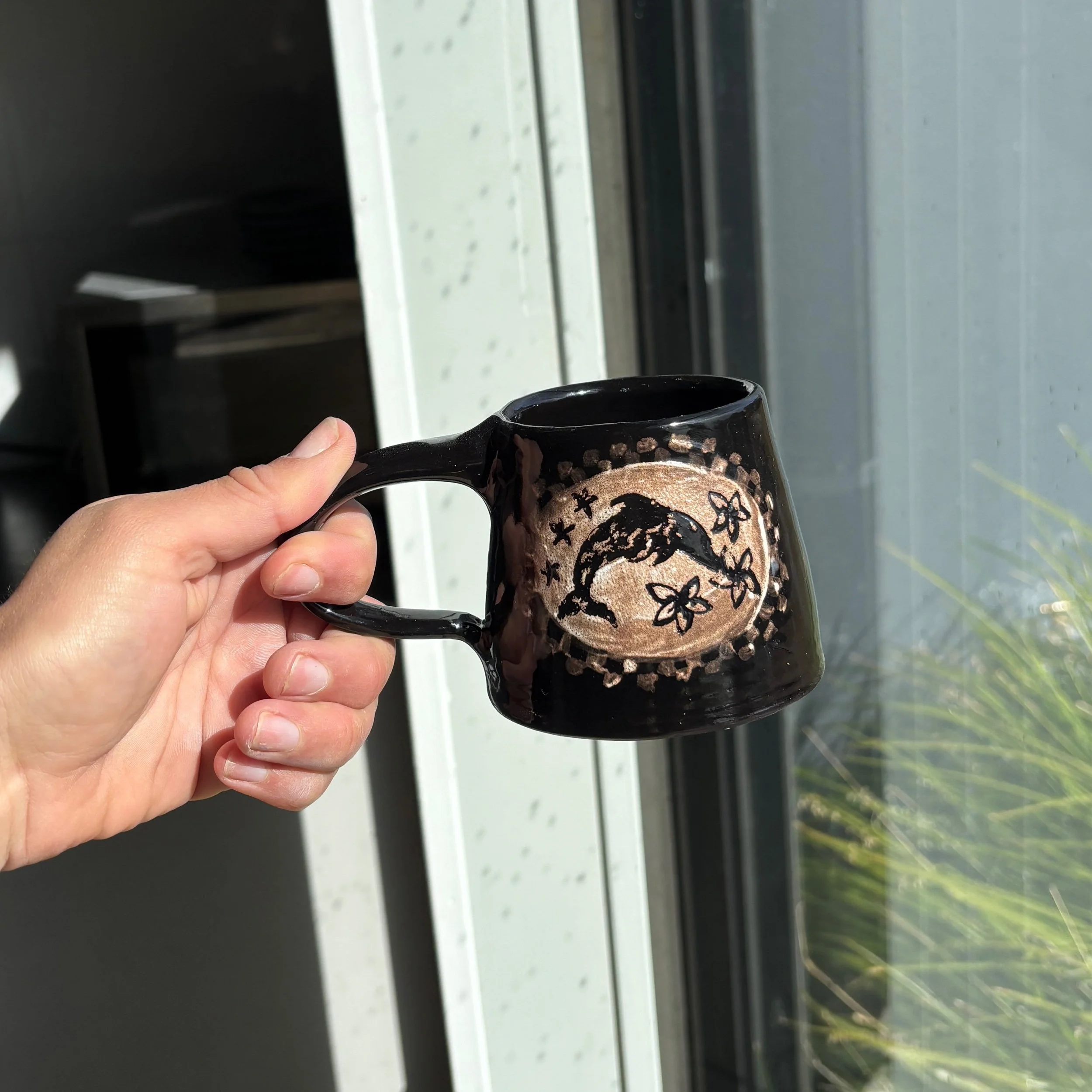 This handmade mug was carefully crafted using my favourite black clay and hand painted to be truly one of a kind.